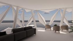 To provide a panoramic view where the green is stabbed in the indoor space with green wedges - with the potential of the land, the sea and city view, not only the interior life of the house but also the vista outside the space has been improved. Minimizing the amount of settlement of the building on the ground, make the green wider. Solving a centralized plan with the modular system of the minimal building, floor plans are formed that can see every point of the city. Aim to expand the vista by using minimum walls. That solution is using a double skin; first, to set the structural system with a frame with steel construction, and the other is, to place panels that can be opened and closed depending on the angle of the sun.