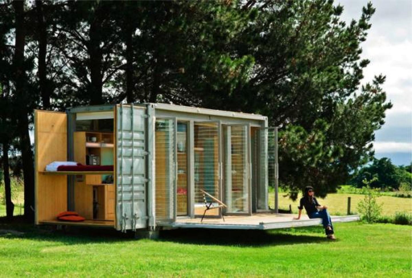 atelierworkshops take on the shipping container as mobile architecture. The container is lined and fitted out using Bamboo plywood. The unit unfolds in seconds to form an expansive 36m2 living space with double bed/bunks/kitchen/bathroom.