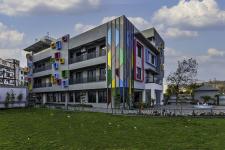 The design philosophy is centralized towards overall development and exposure to the child with a conducive environment for peer group learning. The use of vibrant color palate outside and inside with various graphic forms is intended to work as a visual stimulus and initiate the child into the mesmerizing world of art in daily life. Schools are the best place to learn and improve social skills. The sports areas, green garden spaces, swimming pool and plunge pool along with music and dance room and multipurpose activity hall offers ample opportunities for children to improve their motor skills, physical development, art, craft, social skills and overall development.