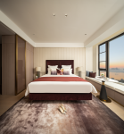 The designer completely renovated the long and narrow living & dining room by setting up a bar counter at the entrance and a dining room and a tea table at the original living room. The biggest breakthrough was to combine the two rooms separating the river scenery, making the whole living & dining space into a big viewing frame facing the Fifth Bridge over the Yangtze River.