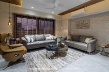 This 4 bhk apartment interiors is an example of simple, minimalistic, and soothing yet elegant timeless interiors. The Client is a well-renowned doctor of Gujarat and reflecting the family’s lifestyle, their brief was for a “minimal, warm, clutter-free and a well-lit home. Thus, they approached us with the expectation of designing their house adorned with quiet and soothing interiors that calm the mind of the user. Considering the simplicity in mind, we have played with the shades of greys and browns to create an overall ambience in the house. A calming trio of white, brown and grey washes over this 2,400 sq.ft apartment, a 4bhk house settled near Iskon Cross Road in Ahmedabad.