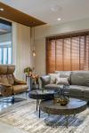 Like the rest of the home, the Children’s bedroom has a clean-lined design with a Study desk flanked by open and closed storage in light brown PU finish.
