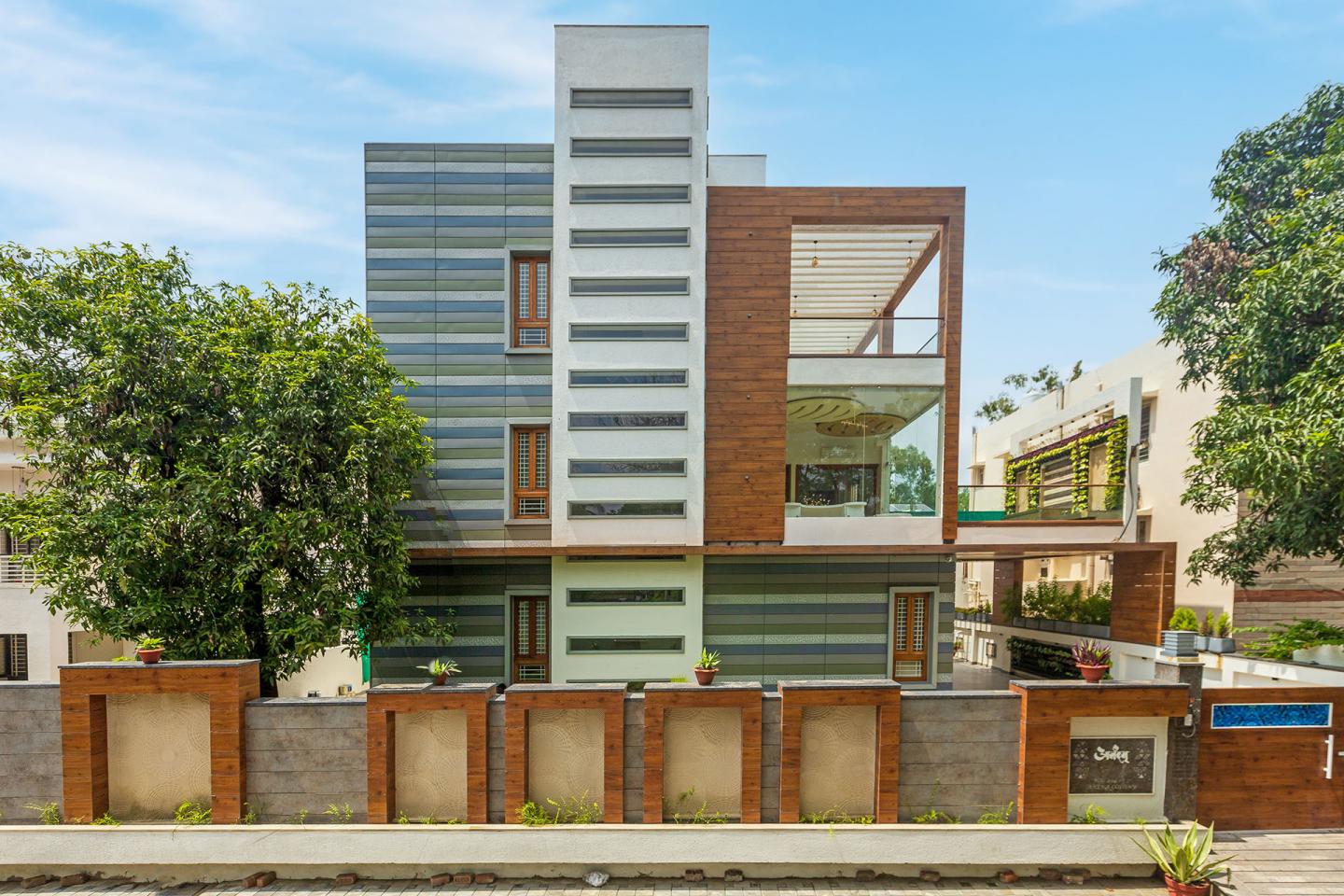 This is a house for a close knitted family with the concept of creating a happy, healthy and contained environment within a bustling city. The colour texture and material palette are modern and avant-garde. The design philosophy is to amalgamate the interior with nature with the help of the sun, water, greenery, and air.