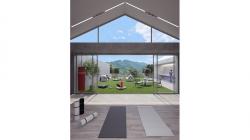 On the first and second floors, the original nature of the project was a network of columns, visible in a glass envelope. And from where the nature of the project villa type begins, multiple volumes of A frames are placed between the corridor and the total volume is formed.