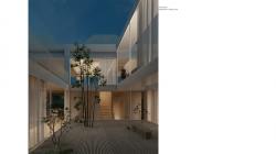 next step, 7.2 x 7.2 grid was impose to organize the entire set on the site so that both blocks are on a common axis. In the last layer was the landscape, planting new trees, preserving old trees, sidewalks, riding paths and health paths that are located around the whole site was designed to be used for walking and cycling, using the view of the river.