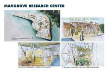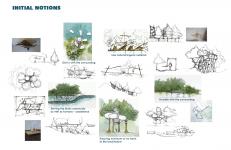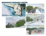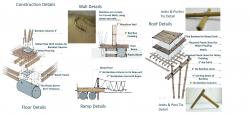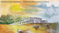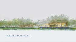 As the priority is to respect the environment and design, keeping environmental integrity in check, materials used for the construction are all biodegradable. For columns and wall exterior cladding, Bamboo are used whereas for walls, mycelium bricks are used. For roof, bamboo and thatch is used, whereas polythene bags are compressed to be used for water proofing on the roof. The spatial planning is as per the requirement of natural light for the research centers. As Microbiology and Mangrove Research need the direct sunlight they are facing the south or have multiple openings for specimens that react only in direct sunlight. Whereas Sea Health and Evolutionary Research Centers have limited or indirect sunlight, as per the need. Plantation of mangroves into transportable pods made of mycelium is central to the whole Mangrove Research Center, once the mangroves achieve a considerable height, they can be moved to the forest. The Living area is to the north and is private. Into-the-Forest Bridge is made of bamboos only, a temporary structure. The branches and roots of the mangrove trees are pruned with the bridge so that the bridge grows on its own and become permanent.