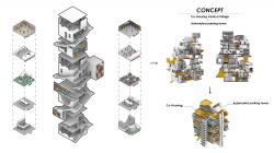 By utilizing individuality, flexibility and communality, we have created a vertical village, a three-way community that bringing diversity and neighborhood life back to the city. Also bringing a sense of life, urban streets, and community space.