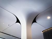 The design takes advantage of a pre-existing pillar in the middle of the space to generate a unique element inspired by a tree, where verticals and horizontals come together in a single stroke. The result is a relaxing space under its branches, and at the same time, the capital reveals some brushstrokes reminiscent of a butterfly. The rest of the ceiling is inspired by the gentle waves of the Mediterranean Sea that unfold until they end in a figure representing a manta ray.