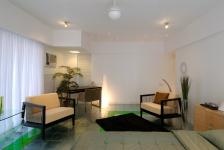 The building is designed to accommodate one apartment per floor so the apartment is well lit and naturally ventilated. Server constraint was faced because of the low internet height provided by the builder. To overcome the problem, AC ducting and ceiling services were innovatively designed to minimize their occupancy. The interiors are elegant and contemporary with the selection of materials from abroad. Sculptured ceilings and glass walls enhance the look of the project.