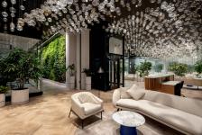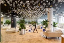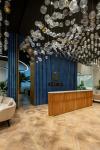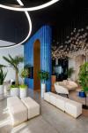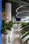 This space includes different users and in addition to customers, it must also meet the needs of client. Our strategy for designing these separate spaces next to each other and in direct or indirect relation to each other has been based on placing each of the sub-spaces so that they are functionally complete and sufficient, but have a different visual appearance to facilitate addressing and recognition. Therefore, in order to create a monolith space, we decided to integrate the waiting spaces related to different sections in one area, so that access to different spaces would be possible from this wide and integrated corridor; We called this space the green lounge and in the middle part, we dedicated the entire width of the project to it. This area has an invisible border with other spaces by using ceiling hangers and living room-liked furniture.