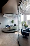In the other part of the western side, two separate and cylindrical spaces are designed for VIP customers meeting rooms; In these rooms, meetings are held with two or three attendees, and due to the fact that these parts are less used, we decided to make the walls completely transparent so that when these rooms are empty, the southern light still enters and illuminates the space.