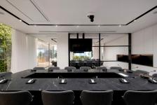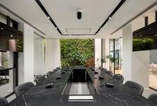 In the eastern part of the project, more possibly crowded activities are located. This part includes the affairs of the customers and the cafe, between these two areas, there is a space for activities like sitting, filling out registration forms, and so on. On the other hand, the western part includes meeting rooms and a customer area; The two meeting rooms in this part, are connected by a movable partition to create an integrated area and allow meetings with more people when needed. There is also a green wall adjacent to these rooms and the partitions have no vertical or horizontal elements in order to maximize the view of this wall from the meeting rooms, so they are designed with maximum integrity.