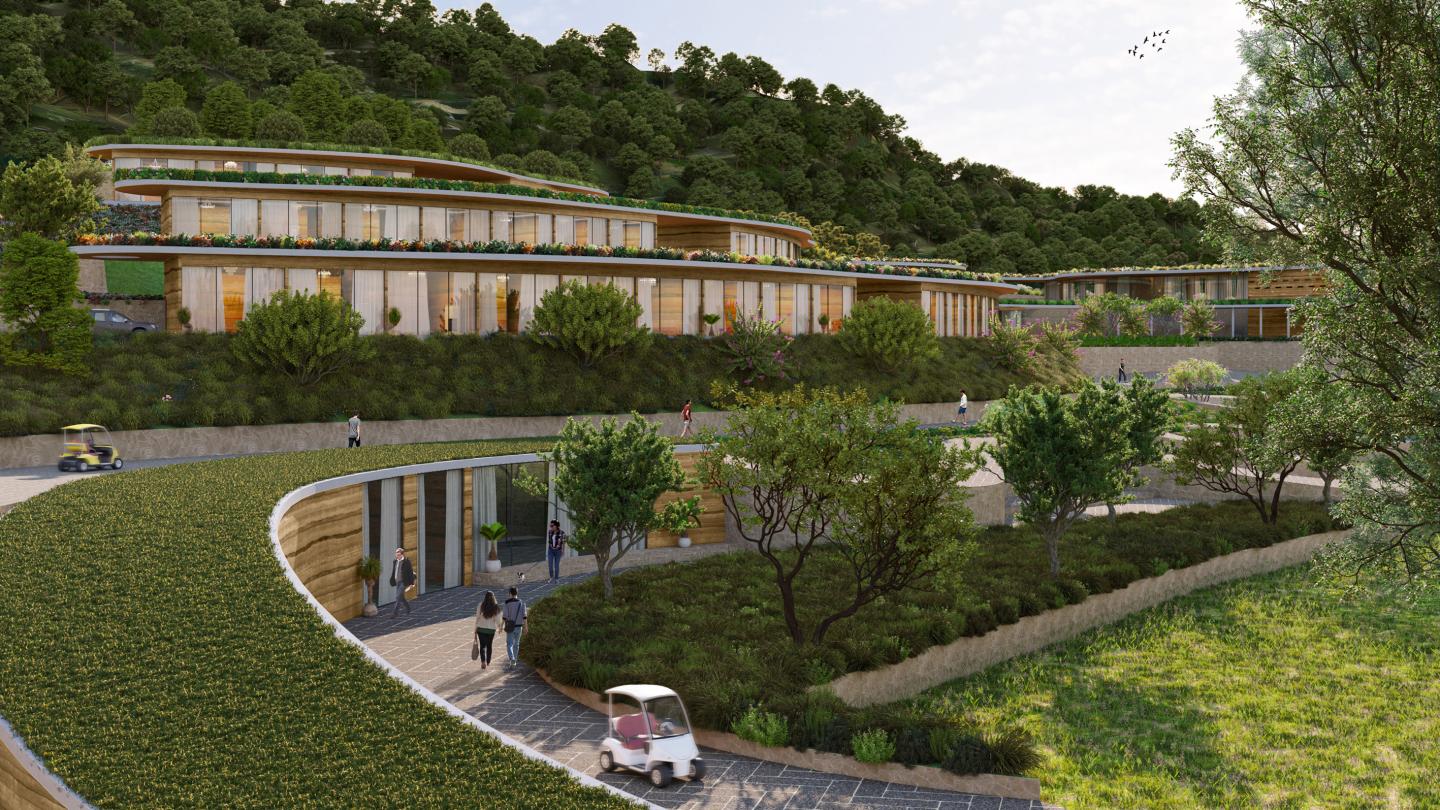 The resort spreads over a vast hilly terrain. The Wellness resort rises high from the entrance level to give an amphitheatric view. It comprises of the Administration block which welcomes the people with a rising structure, Healing spaces with the 5 elements of Nature, Accommodation blocks and various amenities like Restaurant, Pool, spa, boardwalk, Healing Garden, etc. The built forms connect the landscape and the landscape connects the built forms as a flowing spatial experience. The footprint ensures that the site has been altered to a bare minimum. The stuctures rises and falls, following the lay of the land. Each level responds to the contour which gives rise to a dynamic and playful mix of risers and landings. The simple structures disappear into the landscape, mastering the spiritual tranquility of its surrounding. Also the site flows to Pawna Lake hence every structure beautifully captures the views of the lake.