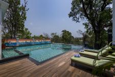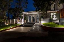 The property consists of seven blocks, the first of which is a residential unit that has been turned into a hotel, and it is here that Designers Group's expertise has been utilized in the design. The hotel's location is fortunate as it is easily accessible and close to the airport. The forms of this resort gracefully descend down the hills to the backwaters, thus, distinguishing it and making it appealing to the people. The backwater flows to the property's end, with the hills surrounding it, thus, embracing the hotel's contemporary work.