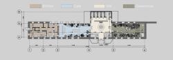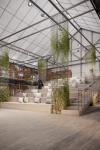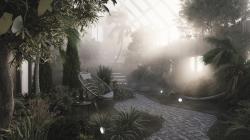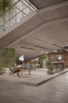 The greenhouse retains its original function, while the western wing is reserved for a small coffee house-garden, since there is no place on the estate and in the surrounding area where one could relax and enjoy the views. The central part begins with a vestibule, brought into the ground part of the belvedere, then already inside the main room we immediately see a staircase to the observation deck, and behind it are bathrooms hidden behind false walls. On the right hand at the entrance there is a greenhouse with various types of plants, places for relaxation and a small stage for the possibility of holding musical evenings. On the left hand is a coffee shop for 25-30 people, then a bar counter and kitchen and staff rooms.