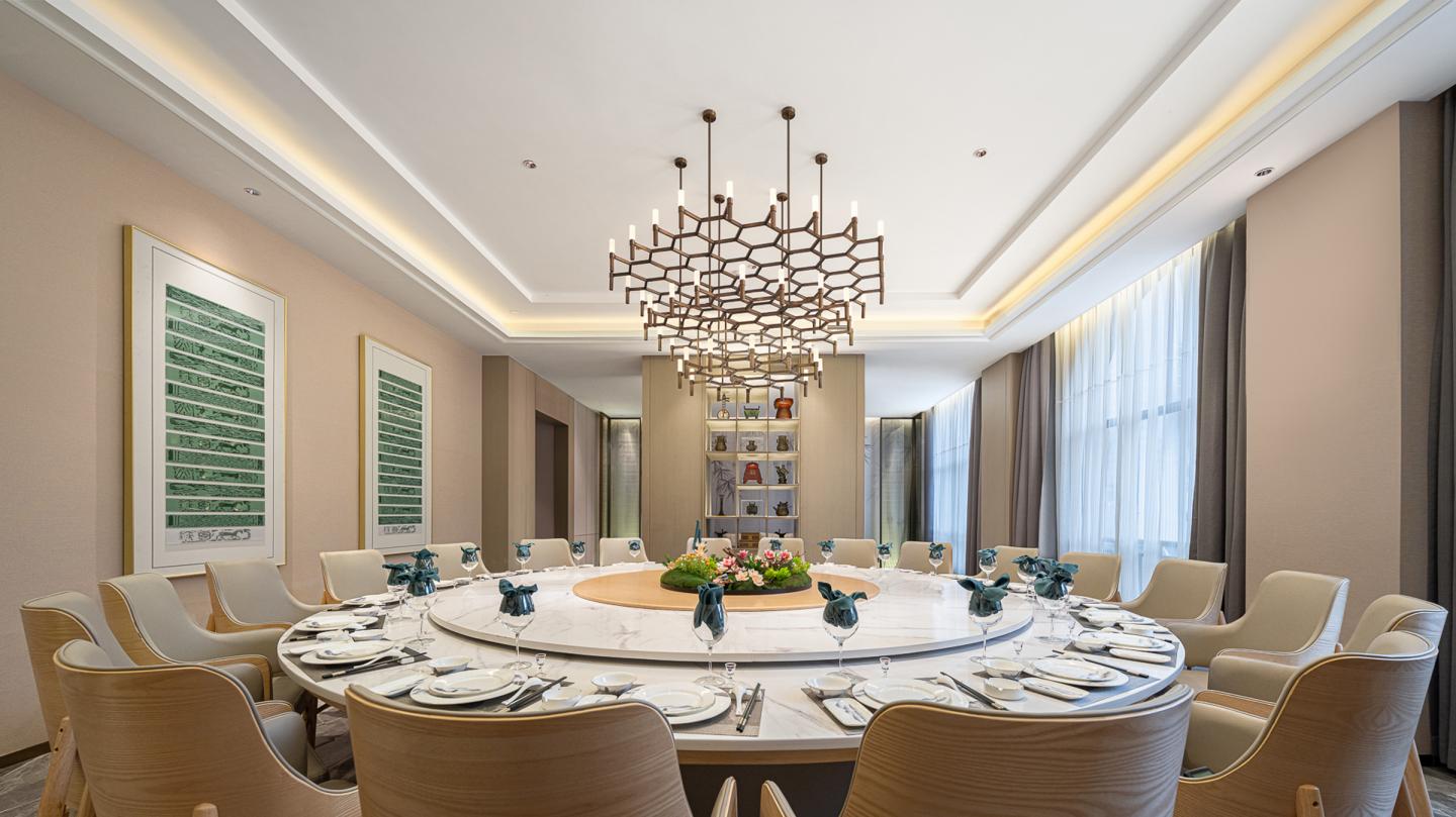 The total design area of this project is 13,000 square meters. Inspired by one of Li Bai’s poems, the designer recreated the magnificent prospect as for the design of Hanyang Hall, where friends and relatives come together to sing and drink to enjoy themselves in such a dreamy atmosphere.