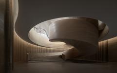 The same bamboo veneer is used in the stairs and floor balustrades to increase the architectural and sculptural sense of the space, which is in line with the artistic temperament of the art museum.