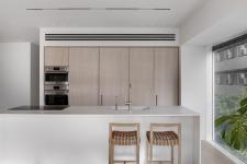 The couple wanted a minimalist and well-organized property to avoid a cluttered home. “I really related to this request, because the way I work encourages order”, explains Kuperman. The couple also asked for a home that will reflect their character, one of calm and serenity. As such, the planning and design concepts were minimalist and zen-like, with less decorative elements, more storage solutions and usage of calming colors and materials throughout the property, such as wood and shades of beige.