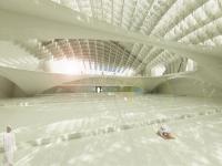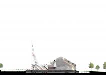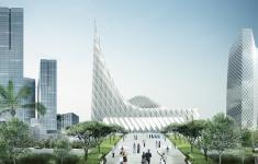 The monumentality and divinity of this Mosque is established through the geometry and form of long spanning ribs of white marble clad concrete structural fins which emerges from the ground and run parallel along the line of holy Mecca and gently twists as it is extruded upwards to face the Creek tower. The surrealistic, parametrically generated dome like roof form falls in the intersection of the city axis and the imaginary line drawn from the site looking towards Mecca. The courtyard in this context is shared between the city as well as the Mosque gesturing social integration and universal acceptance. The extension of the structural fins forms the fourth wall of the courtyard as well as the Minaret. The soaring 100 m high minaret is an expression of liberation generating an upward pull and merges with its surrounding landscape. The rectangle like nature of opening facing the city is highly suggestive that this space is a transitory interface between the city and the Iconic Mosque.
