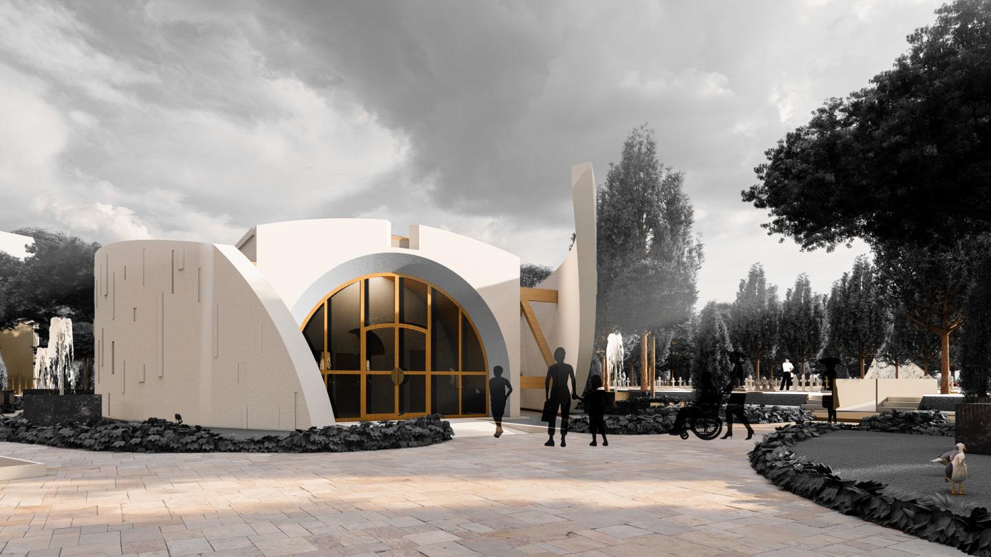 arrangement of spaces and forms facilitates solitude for effective individual mourning while