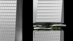 Paying homage to local landscapes and stacked rocks, the massing is informed by two simple but powerful outlines that are abstract and asymmetrical, closely resembling a totem pole. The core of the west block is hollowed out to encourage wind circulation and prevent a sense of overcrowding, with an additional aim of amalgamating built and natural environments. As well, cross-cutting is employed on one side of the mass to open up a sky garden.