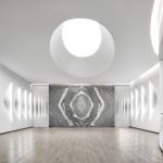 The ceremonial lobby space unfolds along the central axis, and the walls on both sides seem to be endowed with life, opening and closing in rhythm. At the same time, the irregular cracks eliminate the boundary between the reception space and the functional spaces in the hall.