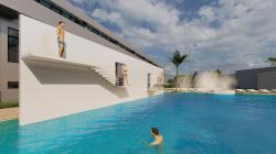The project is located in Kigali, the capital of Rwanda. In the city where sports venues are increasing, new pool projects are also increasing. The pool design, located near the apartments, was designed with the thought of how it could be more fun instead of designing a classic pool. Rectangular pools with perfect 90-degree corners have been around for decades. They are ideal for swimming laps or engaging in other types of water exercise. The pool is designed in dimensions of 20 meters by 30 meters. A baja shelf actually kind of like having a pool within the larger pool. Very popular at high-end hotels, a Baja shelf adds luxury as well as functionality to your pool is designed on one of the long sides of the pool. On the other long side, the jumping wall was designed to stay inside the pool and it was thought to be a part of the pool. On the short side of the pool, there is a circular jacuzzi(hot tubs) which is for more than 1 person use with pressure jets having water air mix is call jacuzzi in general terms. A hot tub is a large tub or small pool full of water used for relaxation or pleasure and in most cases, they have jets for massage purposes. Jumping areas are not located in the water in classical pools, they are built on the edge of the pool. In this pool, a jumping wall in the water has been designed and thus the jumping wall has been made a part of the pool. The wall, which has jumping platforms for jumping from different levels, will allow people coming to the pool to have a more enjoyable time.