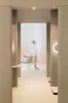 Rounded corners and seamless surfaces complement this circulation. A gentle peach gradient climbs up the walls, evoking a sunrise and highlighting the smooth lines in the space. Notably, the dominant central column takes on a capsule shape. The capsule avoids the hard lines and sterility of typical medical spaces while eschewing overly-organic forms. It is both comforting and serious, light and solid. Throughout the space, this formal motif is employed at various scales, creating experiential continuity and a sensual satisfaction that awakens the mind and invites interaction.