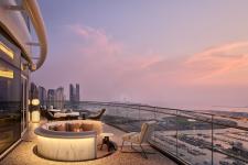 Although the tower is an extension of Le Meridien hotel, it is a stand-alone development with its independent access and drop-off area. The glittering glass architecture towers over the city below, offering unobstructed views from each of the guest rooms and suites over the Arabian Gulf and the world’s highest observation wheel Ain Dubai . The tower features a sunset destination experience by overlooking the Mina Seyahi bay and a signature dining venue commanding views of Palm Jumeirah Island from the rooftop.