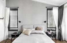 The parents' master suite, located on the fourth level, includes a gallery that overlooks the living room. It was originally enclosed by a wooden railing that has now been replaced by a glass display case that allows on the one hand to observe what is happening in the public space and on the other hand privacy for the parents. The original ceilings were removed and in their place new beams were installed that correspond with the ceiling of the living room: "We raised the height of the original ceiling. That is how we increased the volume and therefore automatically the space looks bigger," says Aizenberg. "We created an aesthetic and clean room with hotel vibes and a perfect view towards the grove. The floor of the space was covered with a slightly bleached oak parquet and instead of blinds we installed velvet curtains that give off the atmosphere of a boutique hotel. In the corridor, which leads from the bedroom to the bathroom, the storage cabinets and the clothes were designed and dyed in the oven in the shade of The walls and they have integral handles. The intimate covered balcony in the master is the couple's favorite place according to them, and serves as a kind of picture frame of the outside."