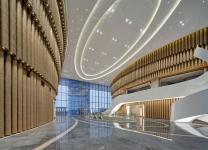 The two main elements of the façade are rows of ornamental columns that represent the pan flute and the transparent glass walls behind them. The orderly columns accentuate the beautiful curve of the building’s massing, while the use of glass brings a sense of lightness to it. Digital printing and parametric approaches are used on the design of the glass walls to add a hint of modernity to the façade.