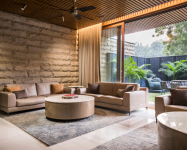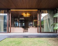 This residential design is rendered with modest pops of neutral colours and the kinship of a close-knit nuclear family that endorses the walls and makes it a home. Its facade is boldly expressed with the use of wood and stone in such a way that the inside and outside environments are seamlessly integrated.
