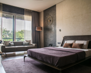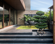 This Vastu-compliant home with optimal natural light also gives invariable importance to architectural lighting design, with most of the light fixtures imported from Europe. Warm white lighting fills the interior spaces with illumination. Customized lighting on the rock walls reflects the material's character, whilst mood lighting elicits different emotions through changeable illumination. Eco-friendly features of this home include a low-maintenance facade cladded with lightweight & durable materials such as sustainably sourced wood, porcelain, slim tiles, and stones in colours of black and grey, giving a striking look. The home exhibits grandeur and audacity even with a minimal design, from bold and dramatic exteriors to more expressive interiors, and the constant choreography of inside-outside connection defines this luxury villa situated in the urban landscape.