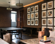 The artwork showcased within every part of the house compliments the house by evoking the spirit of the setting integrating sharp contrasts with the respective neutral palettes, and the tone of the artwork chosen works in tandem with the specific spaces to read as one.