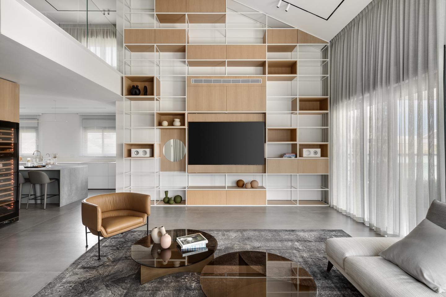 According to Horowitz, the property is characterized by impressive architectural features, but the original layout didn't meet the family’s needs. “We decided to change the floor plan completely”, he explains. “We wanted to emphasize the dimensions of the double headroom on the first level”. The uniqueness of the duplex lies in the fact that one can truly absorb both levels in one glance, and, according to the designer, his wish was to create this powerful experience. Thus, the sloping ceiling, at six and a half meters high, as well as the other high elements, were all an integral part of the concept enabling a holistic view of the entire space.