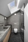 "We maintained the monochrome color scheme in the girls’ bedrooms too, and they too enjoy custom-made furniture that defines the sleeping and study areas”, explains the designer. “The design language repeats itself here too: the parquet floors are conceptually associated with the cupboards and the beds continue the theme used on first-level furniture”. The girls’ bathrooms were planned in similar materials to those throughout the property, except in different compositions. “This is how we created a slightly different bedroom on this level, which still remains true to the same overall design concept”, summarizes Horowitz.