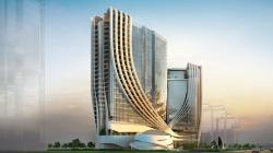 The right tower which has the functions as office and hotel. There is a swimming pool on the 23rd floor as a common pool area for the hotel block. The high-rise block on the right is also designed with a silk strip stretching from the roof to the podium, almost symmetrically with the left tower. Two pieces of silk band are woven on the podium floors from the 1st to the 6th floor, creating a more straightforward central space with Low-E glass materials.