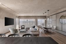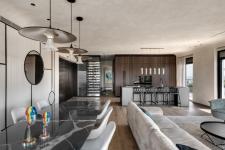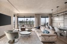 The 160 sqm penthouse is surrounded by a glorious 120 sqm balcony. “The aim was to create a calm and cozy home”, recalls Sela, owner of an architecture, planning, and home design studio. “The choice of a calm and pleasant color palette in earthy desert tones was not arbitrary. Along with smooth coved ceilings, the space exudes a sense of warmth, ease, and serenity”, She adds.
