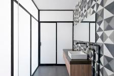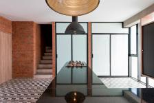 For the facade, three types of partitions were used: white, satin and clear. With this, a dynamic design was achieved that simultaneously allows natural light to enter the different environments, while providing the necessary privacy as required by each of the spaces. In addition, it was decided to use apparent materials to bring a warm industrial feeling, such as concrete and brick, which given their rough texture contrast with the clarity of the building's glass facade.