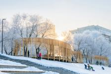 Here, as in an exhibition hall, people move slowly and can go beyond the “border” to an open terrace towards the river, lie down or sit down, enjoying panoramic views of the city, the Yenisei islands or their own consciousness.