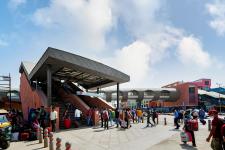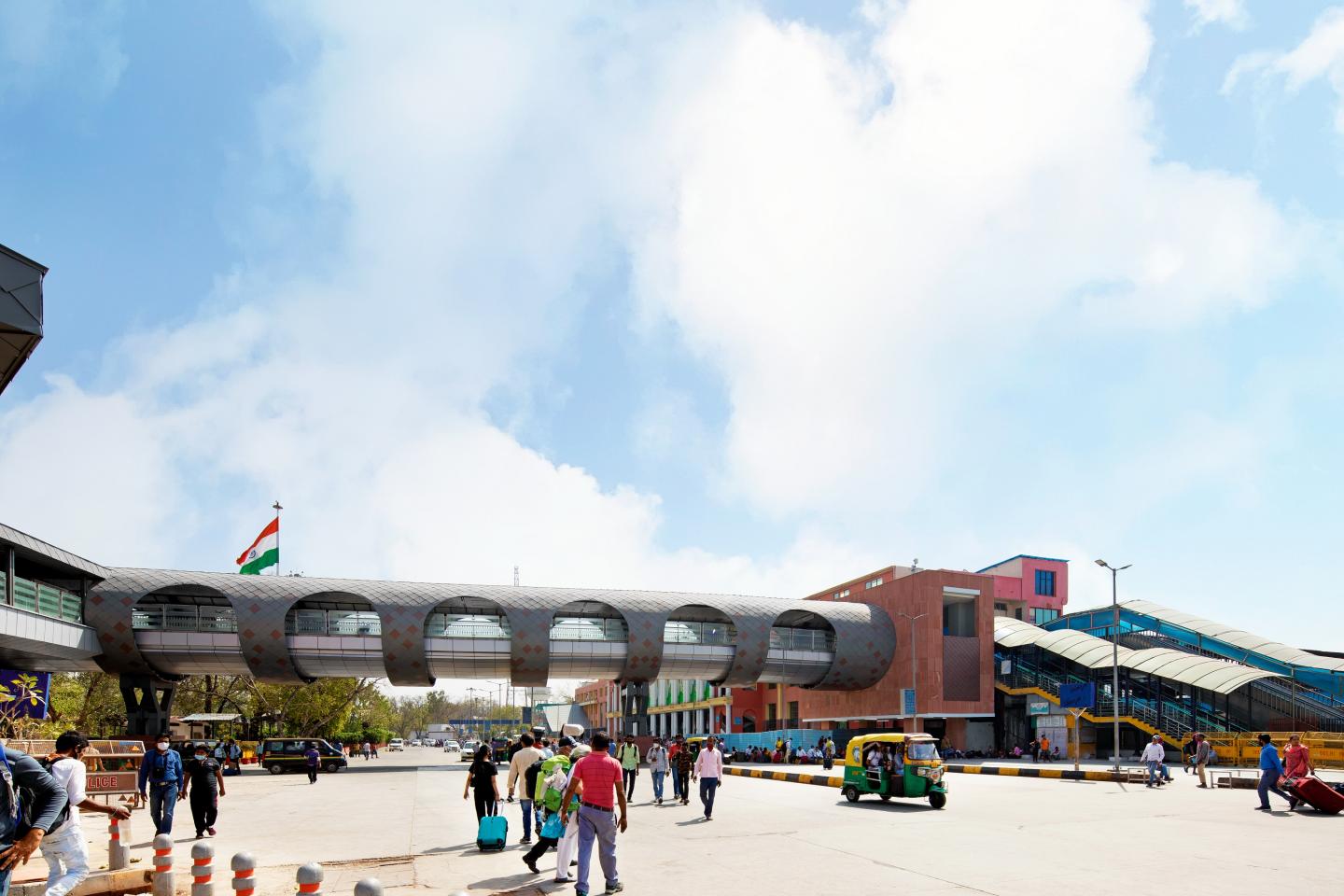 New Delhi Railway Station has an average footfall of 4,50,000 people per day. It is a major transportation hub integrating Railways, Delhi Metro Airport Express Line, Yellow Line, Taxi Stand, Bus Stand, Private Vehicle Parking and DMRC parking Building. All these modes of transports and pedestrian traffic was disjointed and it was difficult for people to transit from one mode to the other. There was an urgent need to integrate all the pedestrian traffic to ease the comfort of the people and this was solved aesthetically and efficiently by DMRC.
