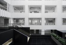 When sunlight fell from the huge skylight, the simple and delicate strewn grille swing in the alternation of light and shadow. Walking inside the “building in a building”, one can feel the scale of the space and time passing by.