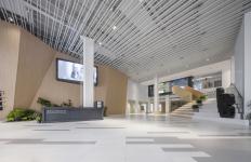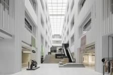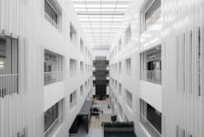 Each of the other four floors are office areas defined by the needs of start-ups. The space is designed to wrap around the atrium, which ensures privacy and also assures each office experience the different height of space changes.