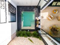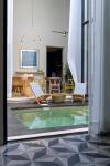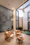 The heart of the space is a small pool that envelops the bedrooms and the common areas, making a reminiscence of the cenotes in the peninsula.