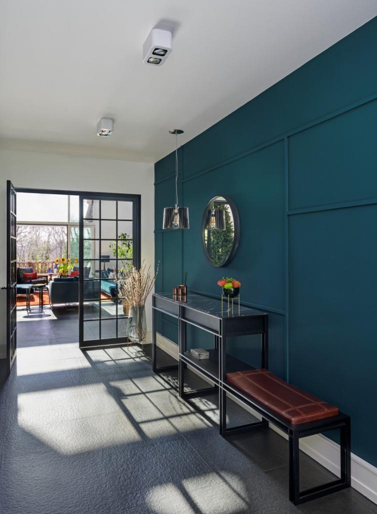 This time, the focus was on warming up this over-modernized, remote house, and creating a connection with its surrounding habitat, while still preserving the urban connection. To create a bond between the house and the garden (plus the forest) and bring them closer to each other. In addition to the existing whites and anthracites all around the house, it was aimed for a bit more elegant colours, textures, and furniture for a more sophisticated feeling in the main living room, while going for a more cosy, warm feeling in the garden level.