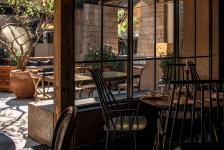 The full adoption of the "base materials" will create barbaric primitive beauty for the space. In view of the disadvantage of insufficient lighting in the project, we incorporate the design concept of "cave" into the space. We remove the only French window for lighting to make a small rose garden, blurring the inner and outer boundary of the "cave", and letting the sunlight and breeze bathe the hall through the garden and the tables by the window.