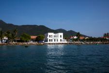 Characterized by Santorini architecture: white painted houses by the sea, Santo by the Sea no doubt was built to meet perfection. Whitewashed houses in complete harmony with blue sea and golden sand. All the walls and ceiling are finished rough from sand without being flattened bring out the nature but no less delicacy of a sea villa.