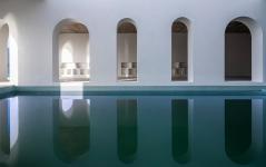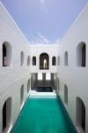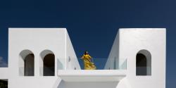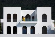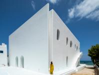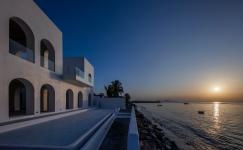 Combining a minimalist style with the elements of traditional Greek island architecture and modern beauty, it is designed with large arched doorways and thick wall to make the most of the beauty of the surrounding nature and bring natural light into all indoor spaces. The villa has main space for the owner on the ground and guest areas on the upper floor, connected by outdoor staircases to take full advantage of the natural beauty. The rooftop offers fab seascapes, especially at sunset. Between the 2 floors, a large pool area located in the middle of the house, bringing again the famous blue among the white walls. Addition to the family kitchen space on the ground floor, a sushi bar with freshly caught local seafood is also set up on the upper floor to entertain guests.