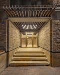 The bricks are placed next to each other and combined in a way that reminds of Iranian architecture. The bricklaying is modern in a way that is reminiscent of the past, at the same time. How they reach each other and how they combine with the stone has happened carefully.