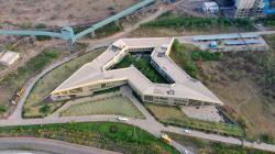 The building shape generates its longest sides oriented towards the north with angled and louvers on the other faces directing the internal spaces northwards thus allowing indirect light throughout the day into all the internal spaces. With all areas naturally ventilated and naturally lit, the indoor spaces are breathable and not dependent on air conditioning and artificial lighting thus rendering the building energy efficient. The external fins are angled as per the direction of the sun reducing heat gain and glare and creating a comfortable environment within for the users.
